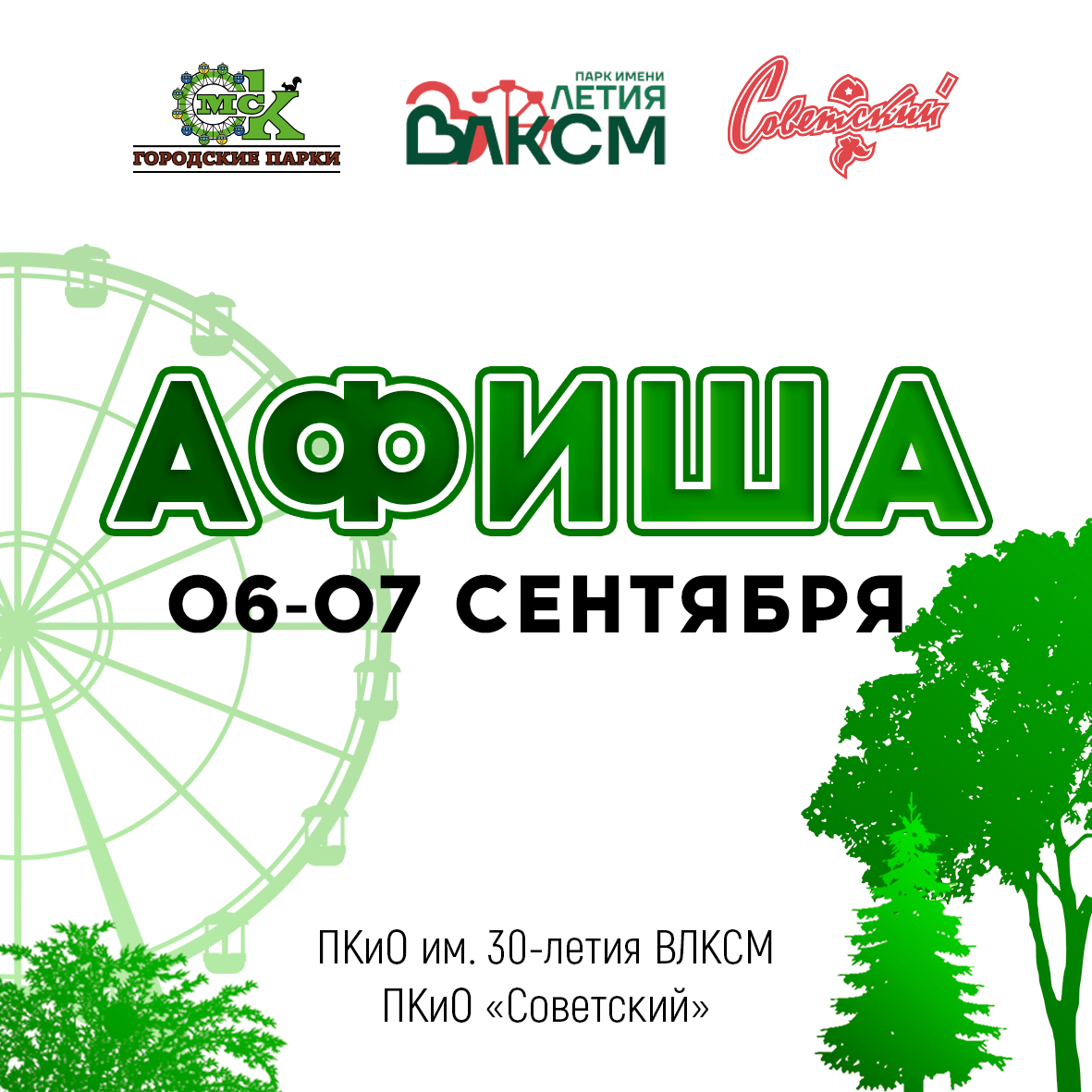 Не пропустите эти насыщенные выходные в наших парках! Ждём вас! 😊💚